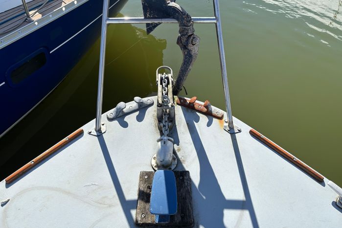 - Stainless steel pulpit, aft deck rails, cabin top rails and stern rails.